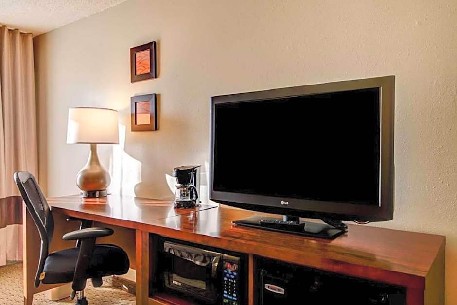 A cable TV, microwave, and small refrigerator are included in this nonsmoking room.